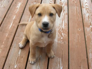 As for training, it’s coming along, most of the time. They sit, they come, they bite less, although they’re still better paper shredders than the machine in Fred’s office. When they’re not eating, excreting or sleeping, they’re usually wrestling. It drives me nuts. But I think I had a breakthrough this morning. I actually got them to separate and sit perfectly still for at least a minute.